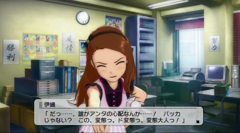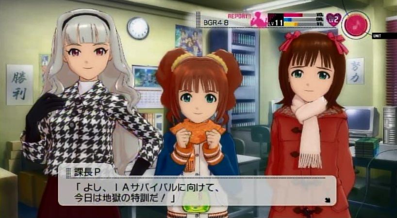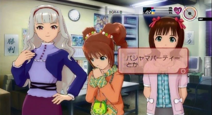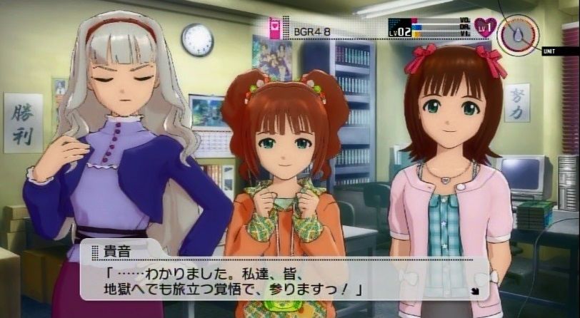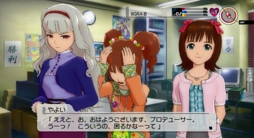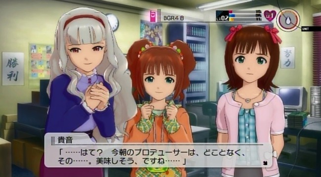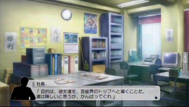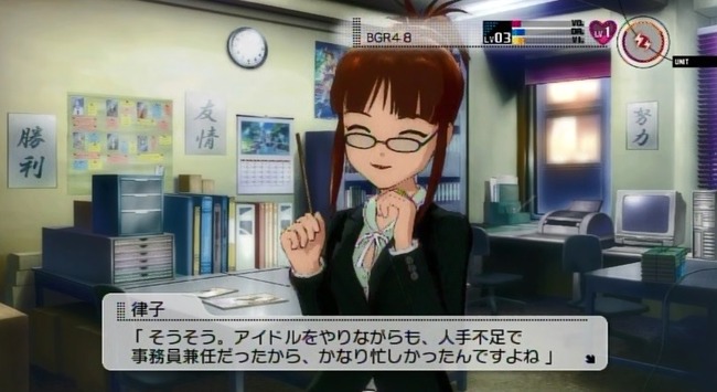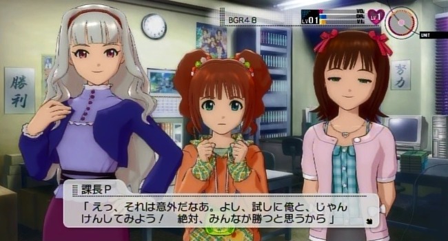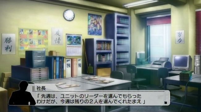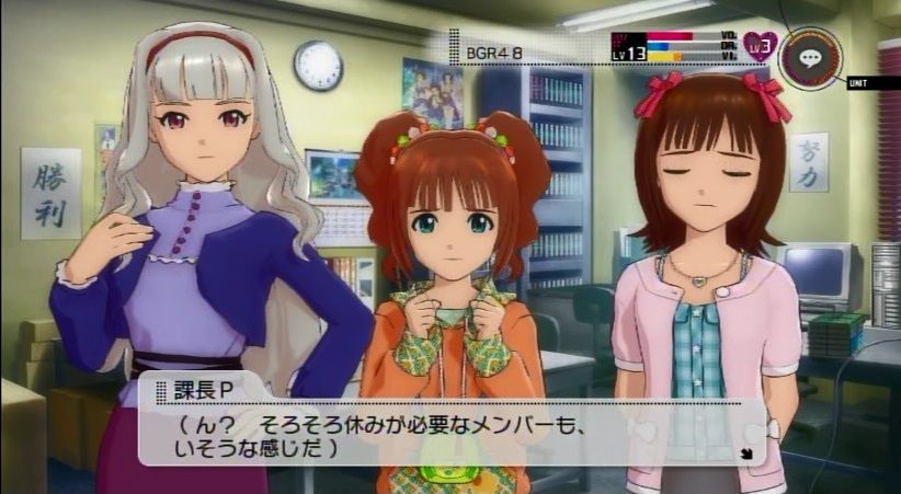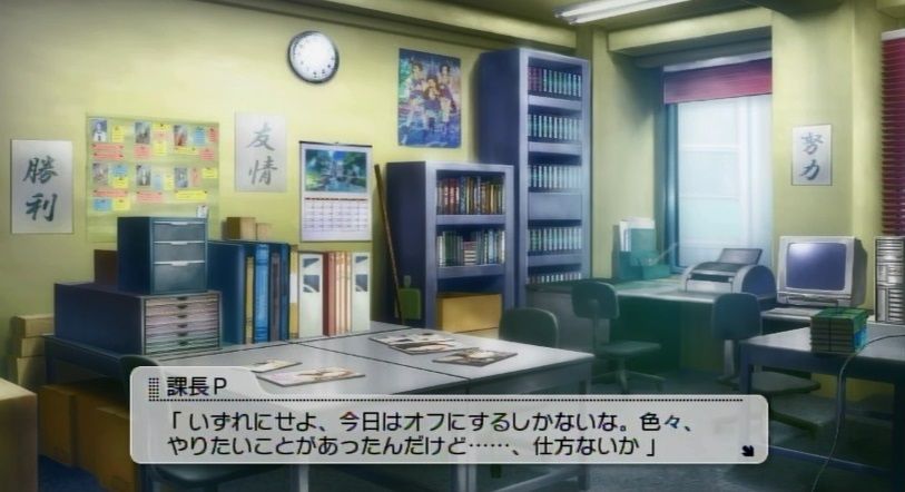 『今週の活動が終わり、事務所にてミーティングを行うBRG48と課長P』