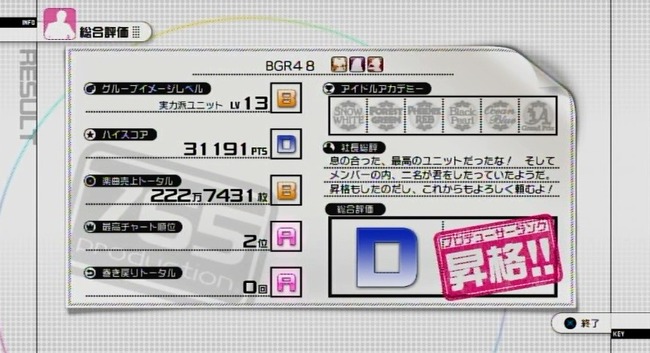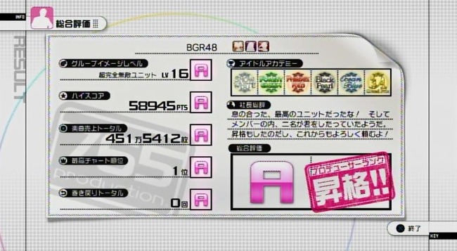 もちろん、その結果はアイドルのステータスに影響する』
