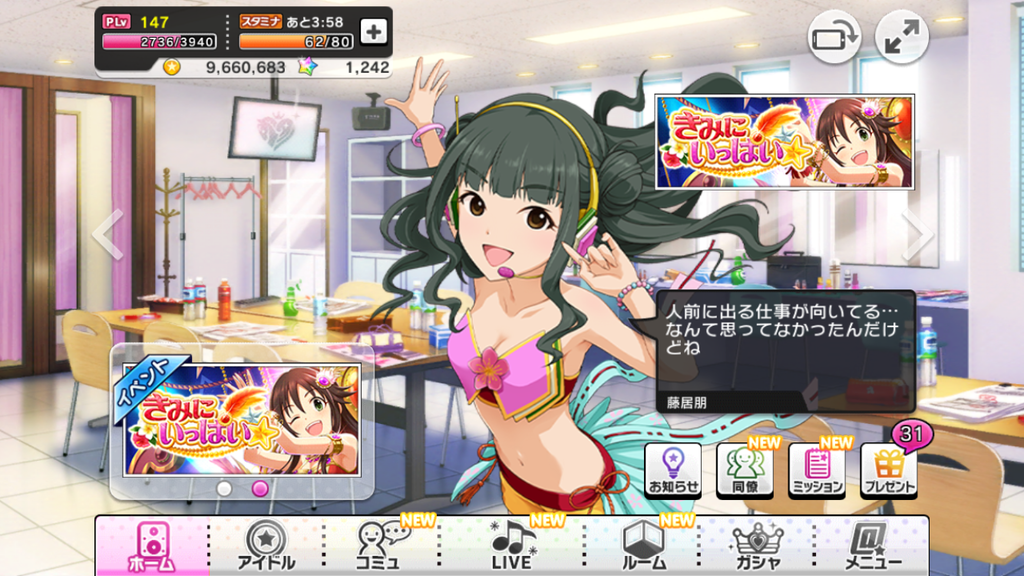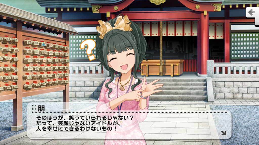 余談ですが、モバマスの方では『目指せトップアイドル!』といったニュアンス発言が多々ありますが、デレステには一切ありません。もしかしたら両媒体において朋ちゃんの成長の方向、目指している形は違うのかもしれませんね。