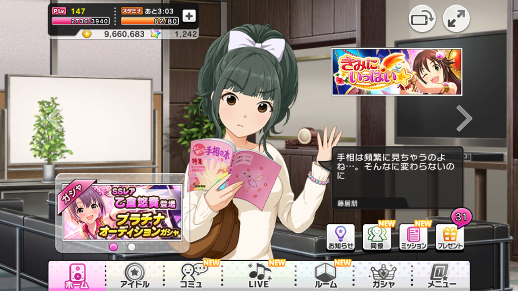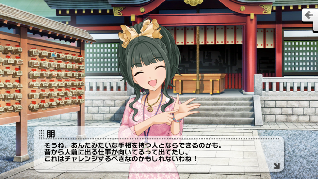 しかし、朋ちゃんの手相はまだあまり変わってはいないようです。今のところデレステではこれ以降手相の話は出ていませんが、果たして変わっているのでしょうか