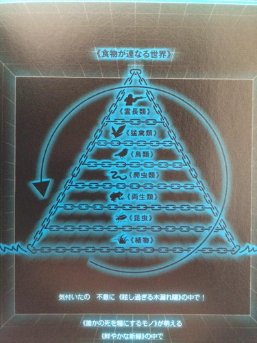 P「ちなみに『草を食む 虫は呑まれ その蛙を呑む 蛇も食われ その鳥を食う 鷹は空を 何処までも高く 自由に飛び去った 遠くで鳴り響いた銃声 屠った彼も いずれは死して土に還る 彼らを繋ぐ 鎖で編んだ ピラミッドには 勝者など 誰もいないと』と読みます」